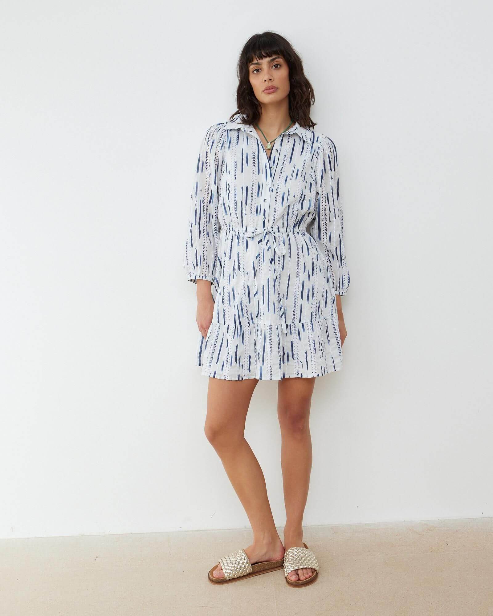 Intricately stitched and carefully carved, this technique creates breezy, lace-like openings that evoke lightness, grace, and summer romance.