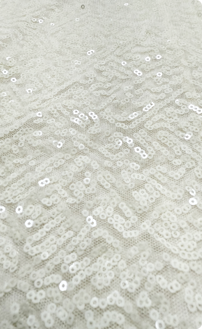 Gleaming sequins and lustrous beads are hand-placed with meticulous care, infusing the fabric with light, movement, and a beautiful sparkle.